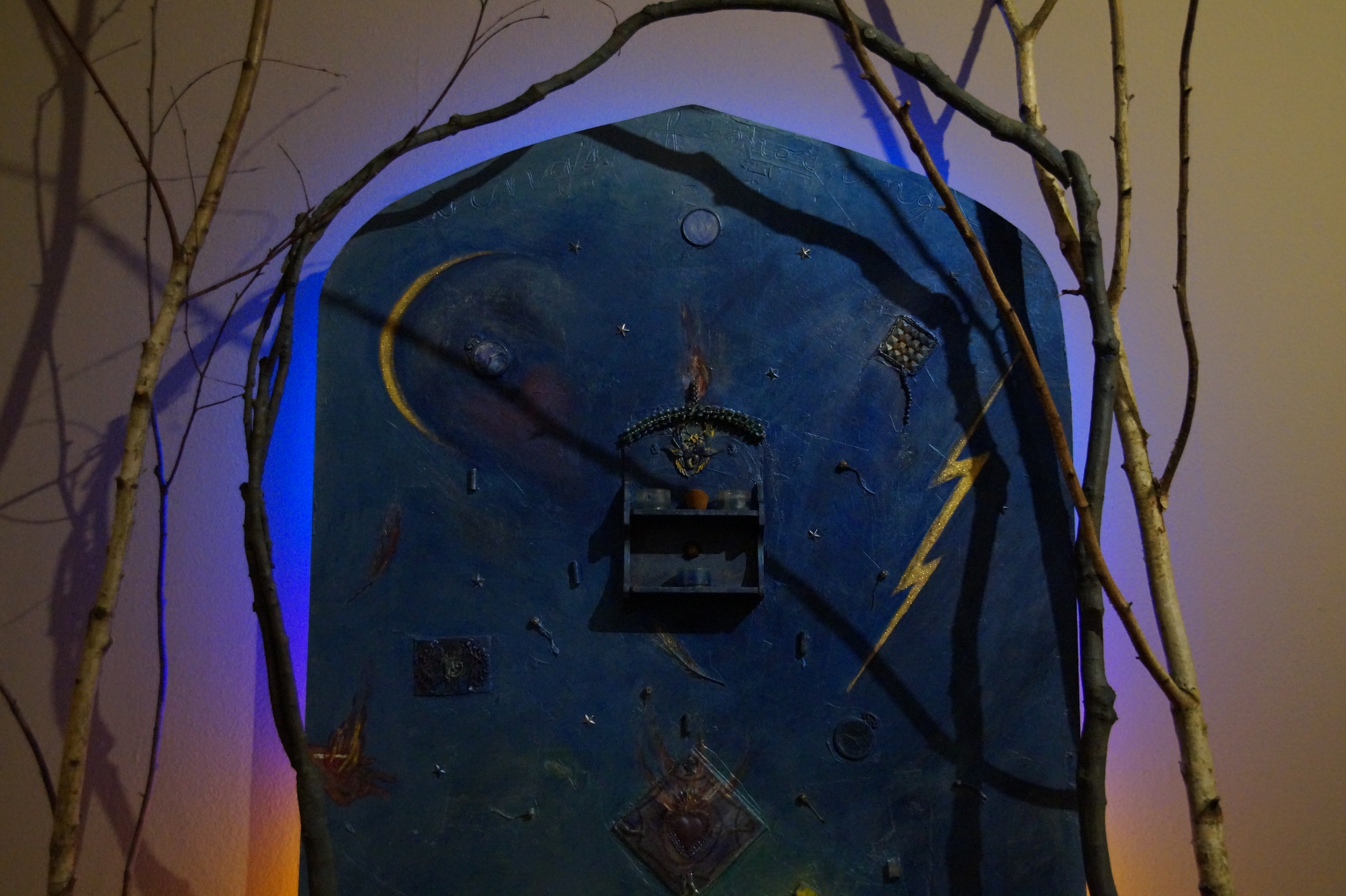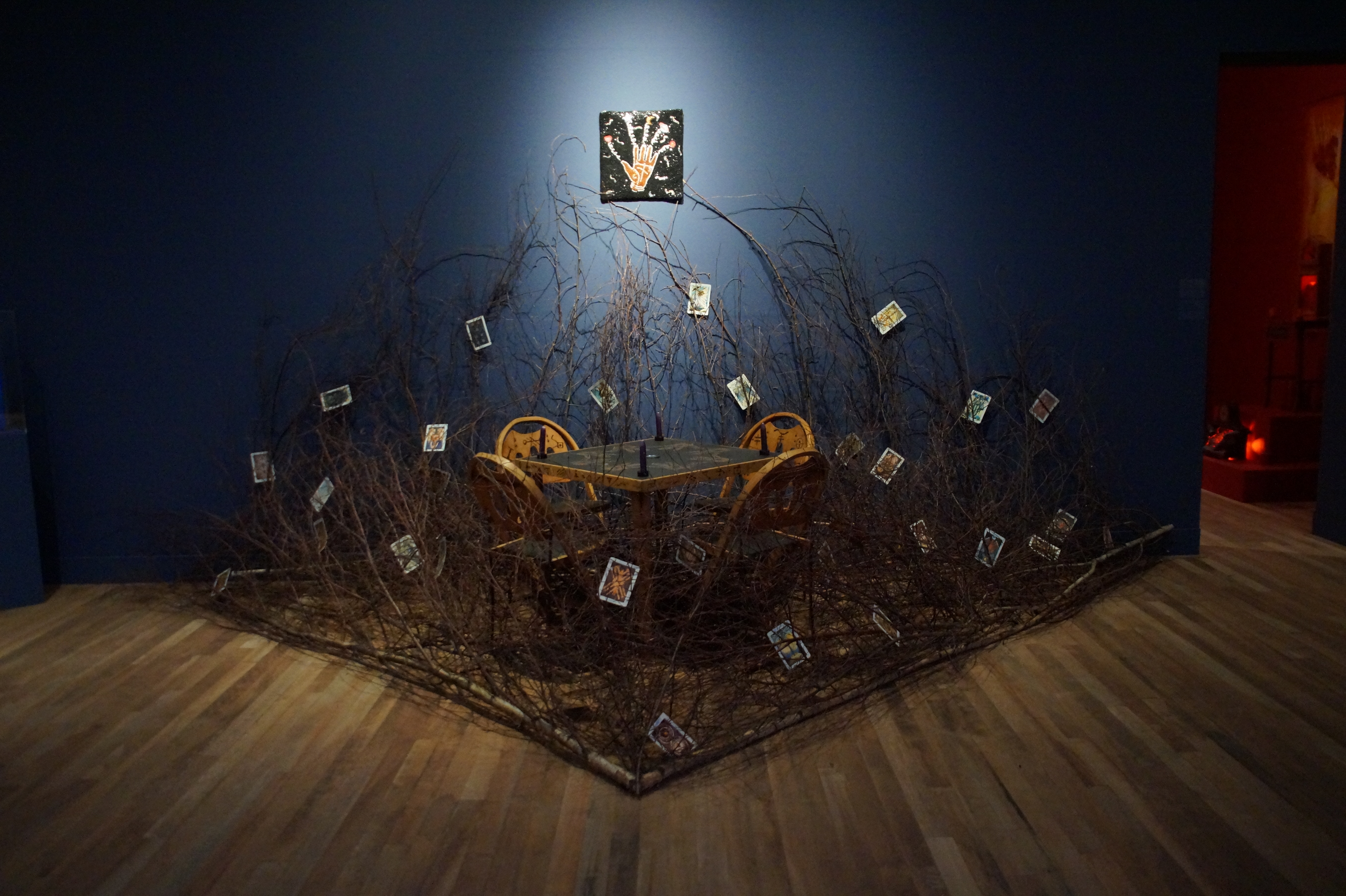 In de grote zaal bevinden zich werken met een spirituele of mystieke inslag: assemblages van beelden en altaren, waaronder een votiefaltaar met eromheen giften, ook van bezoekers. Tussen kale takken een tafel met daarop de handen voor een spiritische séance. De werken zijn dus niet alleen geïnspireerd door de Afrikaanse cultuur, maar gecreëerd vanuit een bredere interesse voor religies en het spirituele. Van alle geloven stond het katholicisme haar het naast, zoals zij Roel Arkesteijn enigszins onverwacht toevertrouwde.