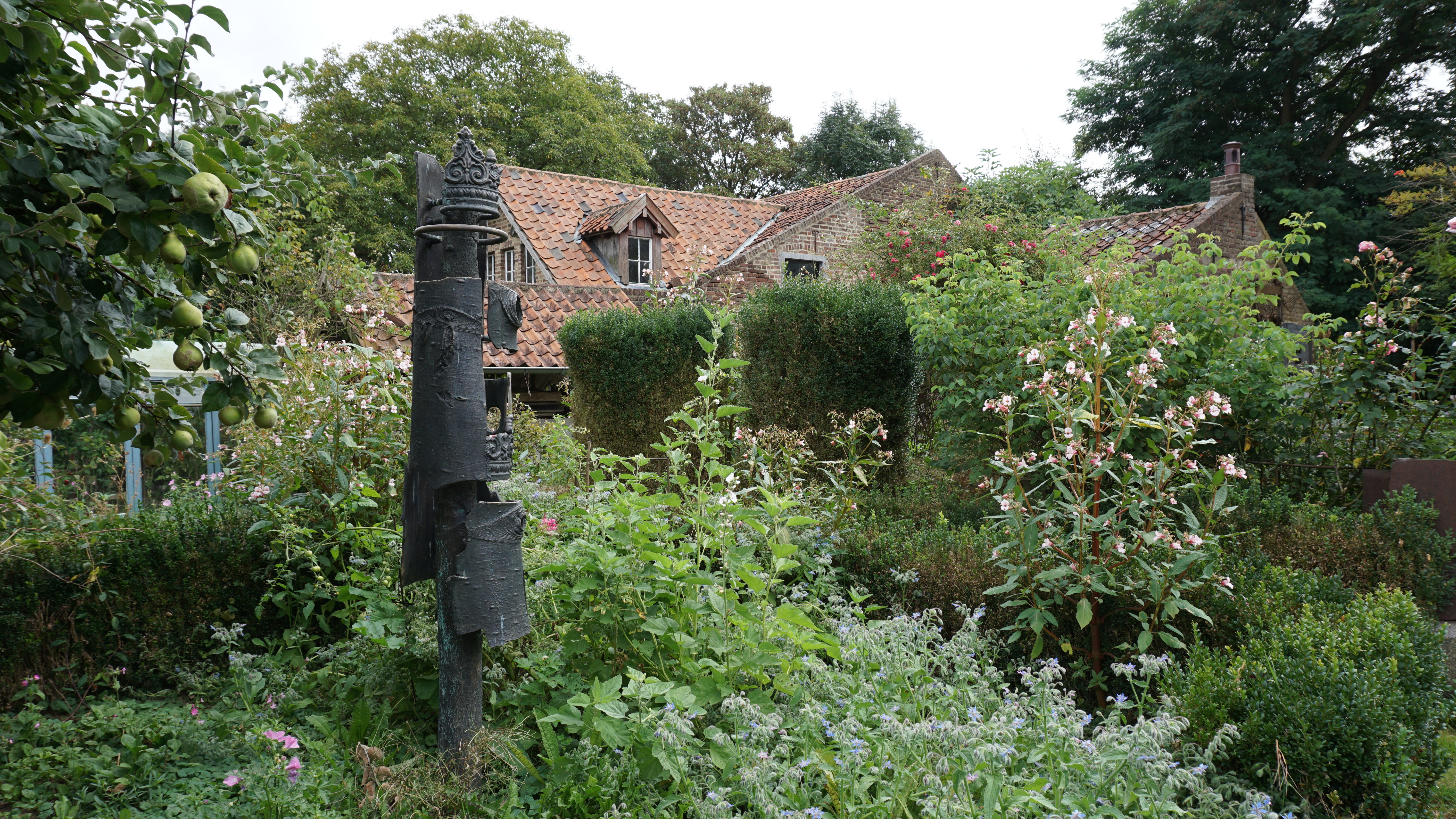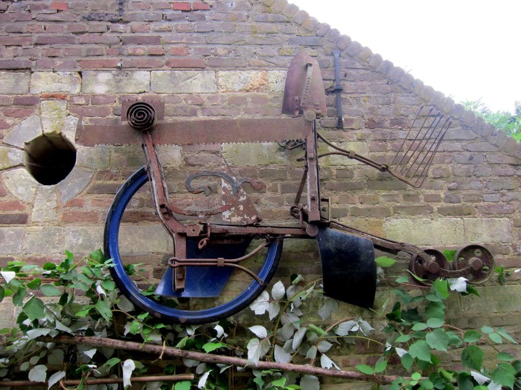 Dat bleek ook toen we arriveerden bij de kunstenaarsfamilie van der Linden in Puth. Wat een ongelofelijk grote hoeveelheid mooie dingen bi j elkaar en wat een geweldige plek. Ogen tekort. Overal iets te zien. En dan niet alleen kunst maar ook de tuin, het huis, de bloemen en planten. De ontvangst was heel hartelijk. Er was een plek voor alle fietsen en de koffie en vlaai stonden klaar. Rem vertelde in het kort de familiegeschiedenis en iets over de kunstenaars die er nu wonen en werken. Daarna mochten we heerlijk ronddwalen door het huis, de tuin en de werkplaats.