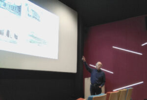 In de kleine filmzaal van de Ligne gaf de heer Laudy een interessante lezing over de ontwikkeling van de architectuur van de Westelijke Mijnstreek met de focus op Sittard.