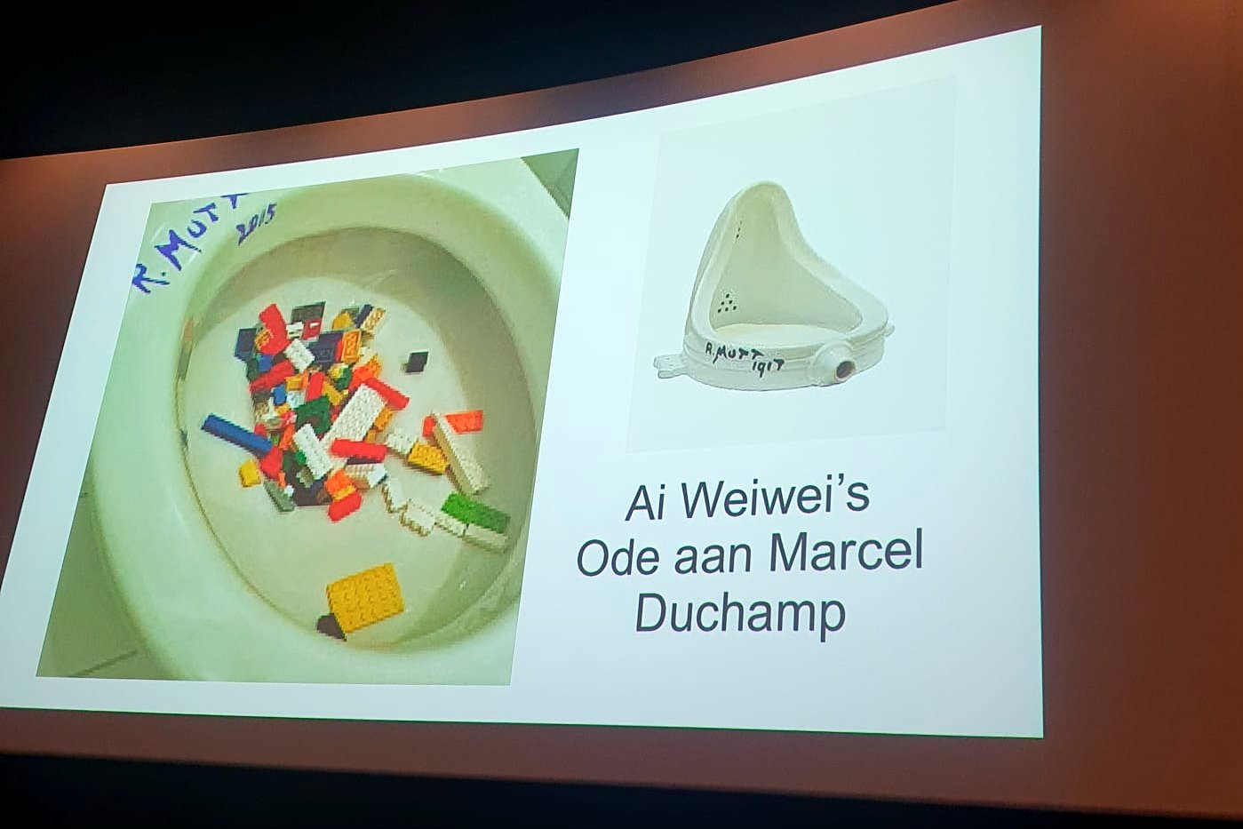 De lezing werd gepresenteerd door Luc Laudy, geen onbekende voor ons, Vrienden. Een enthousiaste verteller die ons soms ook bij de presentatie betrok. Er waren quotes, filmpjes en kunstwerken te zien.