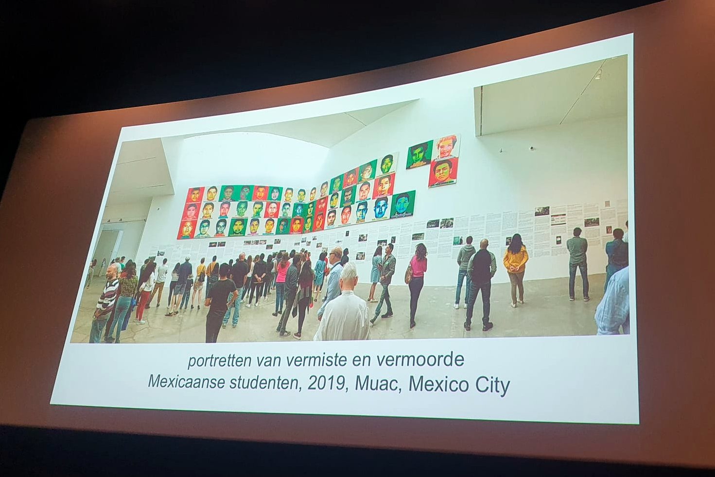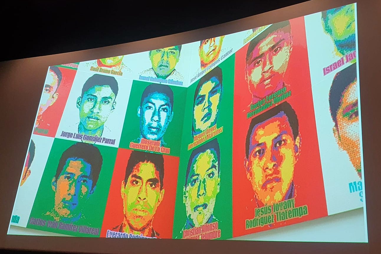 Vermoorde Mexicaanse studenten, gevonden in een massagraf.De portretten zijn gemaakt met legoblokjes.