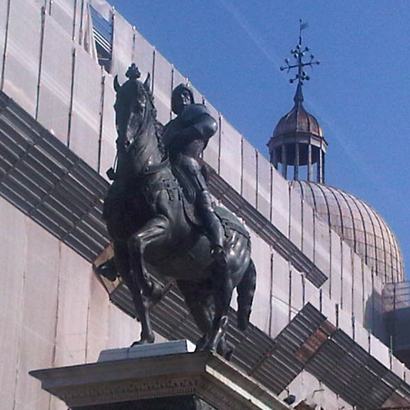 Het Dogenpaleis. Immense schitterende binnenplaats. Waarschijnlijk waren de bezoekers van de doge hier al zo onder de indruk van alle pracht en praal, dat de doge elke onderhandeling met een voorsprong begon. Ik meen ineens mijn vrouw te horen zeggen: “Schat, doe jij even de binnenplaats, dan ga ik effe naar de winkel”. Gelukkig een idiote gedachtenkronkel. Ik moet er niet aan denken. Naarmate die bezoekers verder het paleis binnen kwamen, moet de rijkdom hen zo overdonderd hebben, dat tegen de tijd, dat ze de doge ontmoetten, de onderhandelingen al in diens voordeel beslecht waren, nog voor ze begonnen. Elke zaal één groot kunstwerk. We leren, dat een Raad van Tien La Serenissima, De Republiek, bestuurde, dat de doge ceremonieel staatshoofd was, dat er veel haat en nijd was en dat dat leidde tot talrijke slachtoffers. In de politiek is weinig veranderd. Die slachtoffers waren niet te benijden. Zo blijkt al snel, als we via de brug der zuchten in de gevangenis komen. Gelukkig voor een bezoek en niet voor vast, want aan de cellen ontbreekt alles. Zou via een tijdmachine ‘n gevangene uit La Serenissima overgeplaatst worden naar een cel anno 2013, hij zou zweren tot doge gekozen te zijn en zich in het paleis te bevinden. Aan het eind van de weg door de gevangenis, koffie. De koffiebar bewijst, dat het kennelijk onmogelijk is om cultuur en vlotte drankvoorziening samen te laten gaan. Geen verschil tussen het oude Venezia en de schouwburgen van 2013.Onze doge, Luc, voert ons naar de Basilica San Marco. We kennen de uitdrukking: “Het is niet alles goud, wat blinkt”. Eén ding staat vast. Die is niet uitgevonden in de San Marco. Het is alles goud wat blinkt. Opvallend aanwezig, een luid leeglopende fietsband, waarvan na enkele keren duidelijk is, dat het de mechanische imitatie is van de pastoor, die de gelovigen tot stilte maant. Volgende basilica, Santi Giovanni e Paolo, waar hét ruiterstandbeeld staat. Het tweede echte uit de kunstgeschiedenis. Op het paard trots veldheer Colleoni. Eigenlijk vond die, dat hij op het San Marco plein moest staan, maar dat mocht niet van de Venetianen. Daar hoort geen standbeeld. Toch is hij veel beroemder geworden dan hij ooit gedacht heeft. Niet door zijn daden of de plek waar hij staat, maar door de kwaliteit van zijn beeldhouwer, Verrochio. De Santi Giovanni e Paolo zelf is een paterskerk. Van de Domenicanen, ziekenzorgers van oudsher. Vandaar het ziekenhuis naast de kerk. De kerk zelf bestaat, zoals elke paterskerk, van binnen uit eenvoudig metselwerk. Haar grandeur ontleent zij aan grafmonumenten. De paters wilden wel een eenvoudige kerk, maar moesten ook leven en zieken verzorgen. Ze verkochten daarom aan de rijken plek in de kerk om zich te laten begraven. En die lieten praalgraven maken door beroemde kunstenaars. Niet alle rijkaards die er begraven zijn, liggen er nog, want door de grote hoeveelheid lijken werd de geur in de kerk ondraaglijk. Vandaar rijke stinkerds. De stank won het van het geld en veel rijkaards zijn naar buiten verplaatst. Vóór Giovanni e Paolo nog naar de Santa Maria Formosa, een prachtige kerk op een speciale plek, waar Maria als voluptueuze ( formosa) vrouw verschenen zou zijn. Na de lunch naar Murano. Wereldberoemd door de glasblazerskunst en verpersoonlijking van “Tussen kunst en kitsch”. De glazen kitsch vliegt je om de oren. Voor zeker afkomstig uit China, wordt hij aangeboden als kunst met een grote K. De ogen van de aanbieders verraden jacht op biljetten met een grote €. Na enig zoeken vinden we Galerie Berengo en de expositie Glass Stress, waar wel schitterende glaskunst te zien is. Heel bijzonder en zeer de moeite waard. Van Murano naar het getto. Spitsuur. Filevorming op het water, onbekend maar des te interessanter. Door de vertraging blijkt bij aankomst in het getto de rondleiding te zijn voltooid. Maar L doet zijn verhaal nog eens dunnetjes voor ons over. Mooie indrukwekkende typisch joodse volkswijk. Zes uur. Snel naar de kroeg en daarna ristorante San Trovaso. Voor de tweede keer het snoepje van de week. Prima en zeer geanimeerd. Giovedi is donderdag, laatste avondmaal dus, althans voor deze geweldige reis.